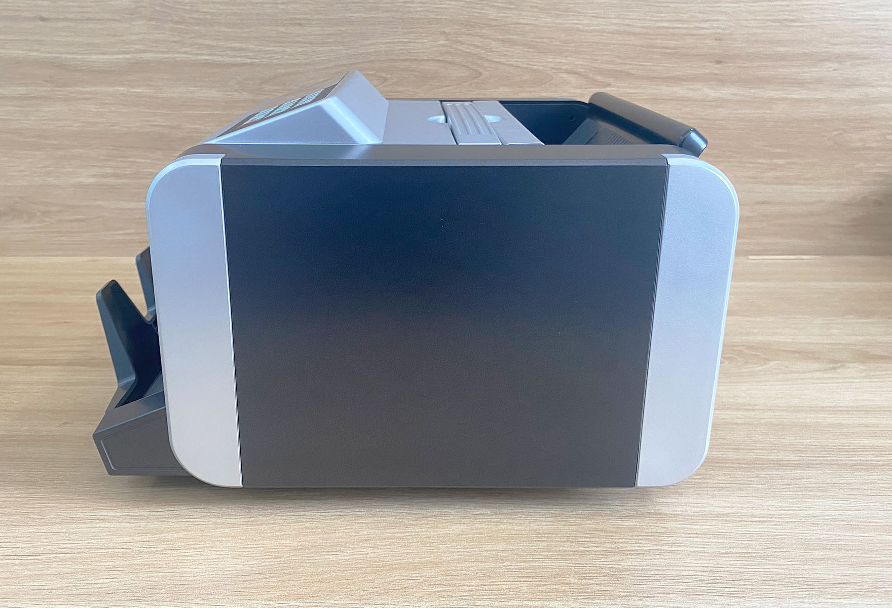 Đặc biệt, máy có kích thước vừa phải, dễ dàng bố trí tại quầy thu ngân, bàn kế toán, kho bạc, ngân hàng. Thiết kế quai xách tiện lợi dễ dàng vận chuyển máy đếm tiền.