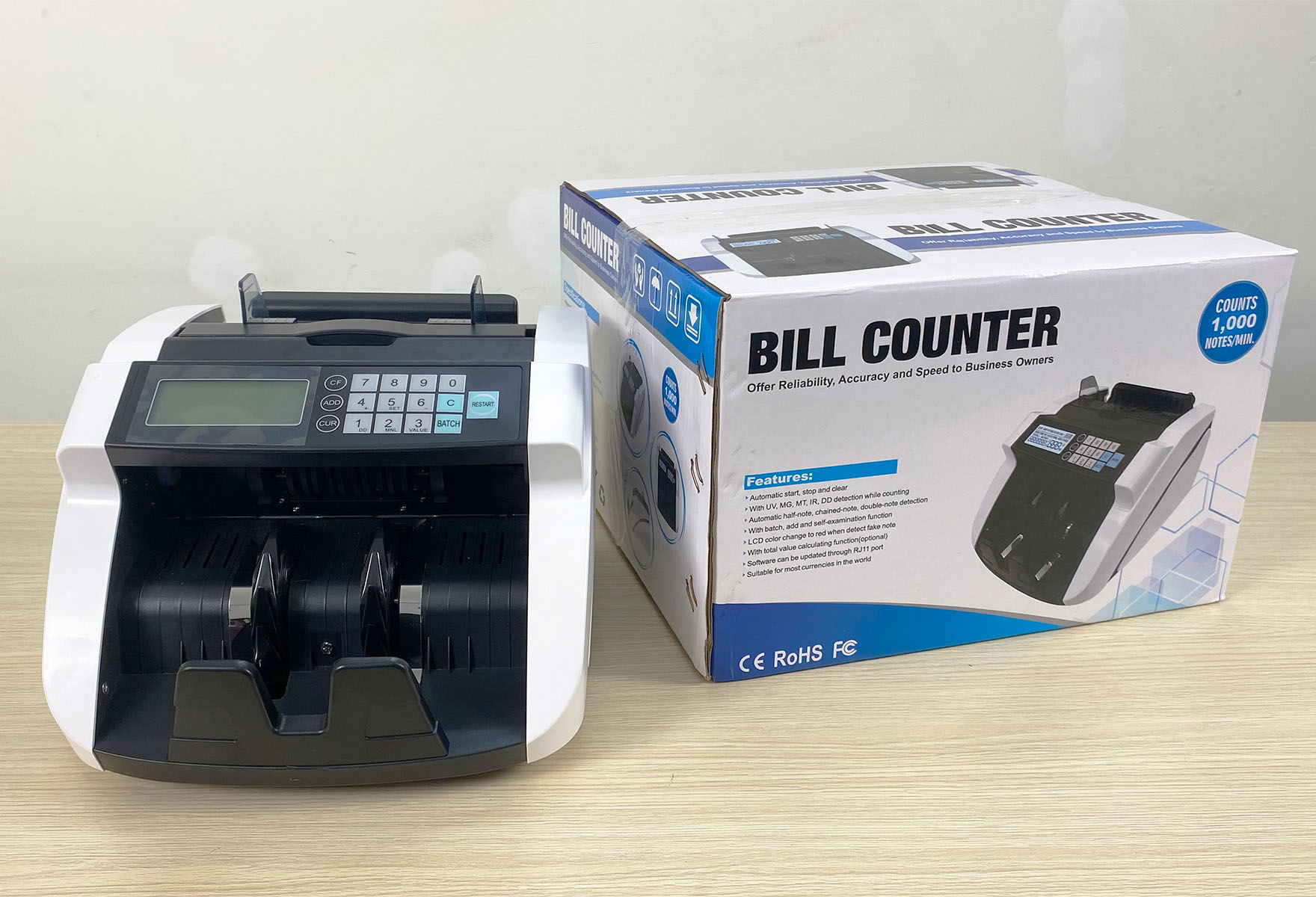 Tốc độ đếm: ~1000 tờ/phút.