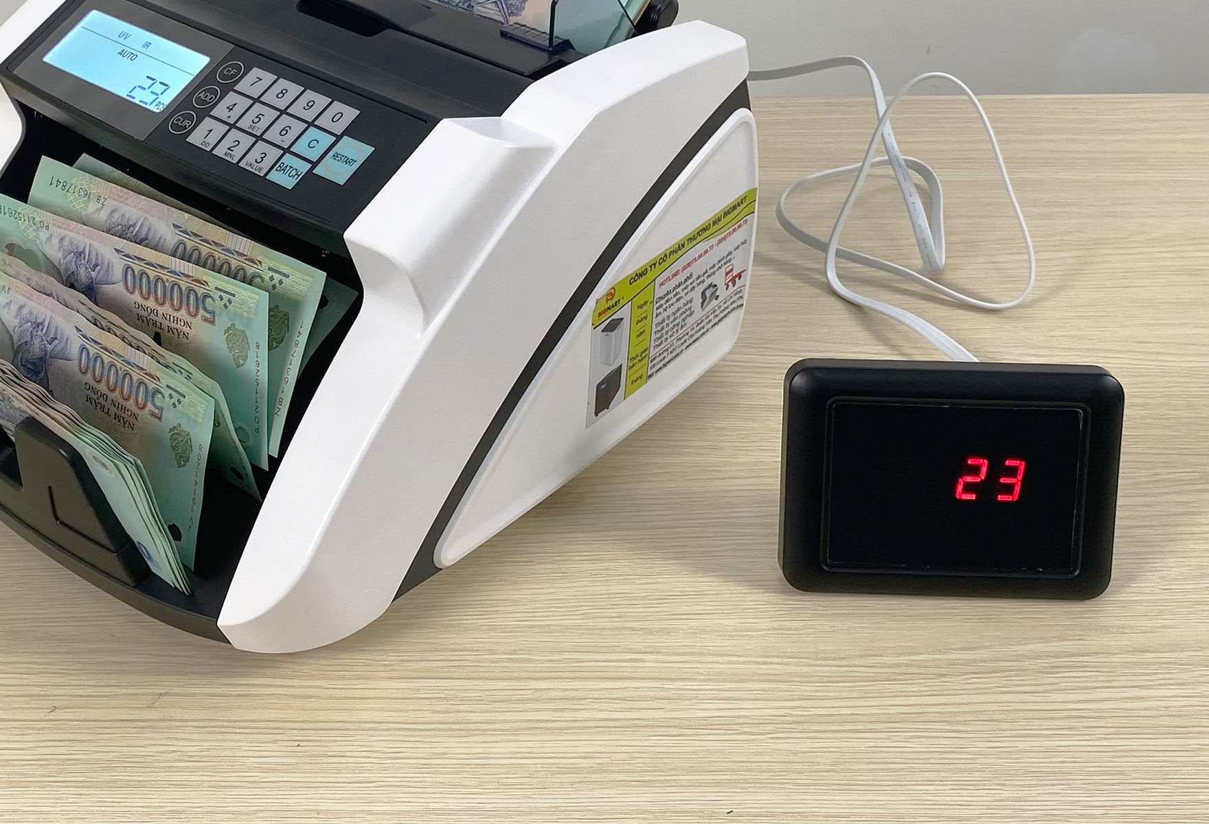 Máy đếm tiền XD-2250C đang được phân phối chính hãng tại BIGMART với mức giá hấp dẫn kèm chính sách bảo hành 12 tháng chuyên nghiệp. Quý khách có thể đặt hàng online, gọi điện thoại hoặc đến mua trực tiếp tại:
