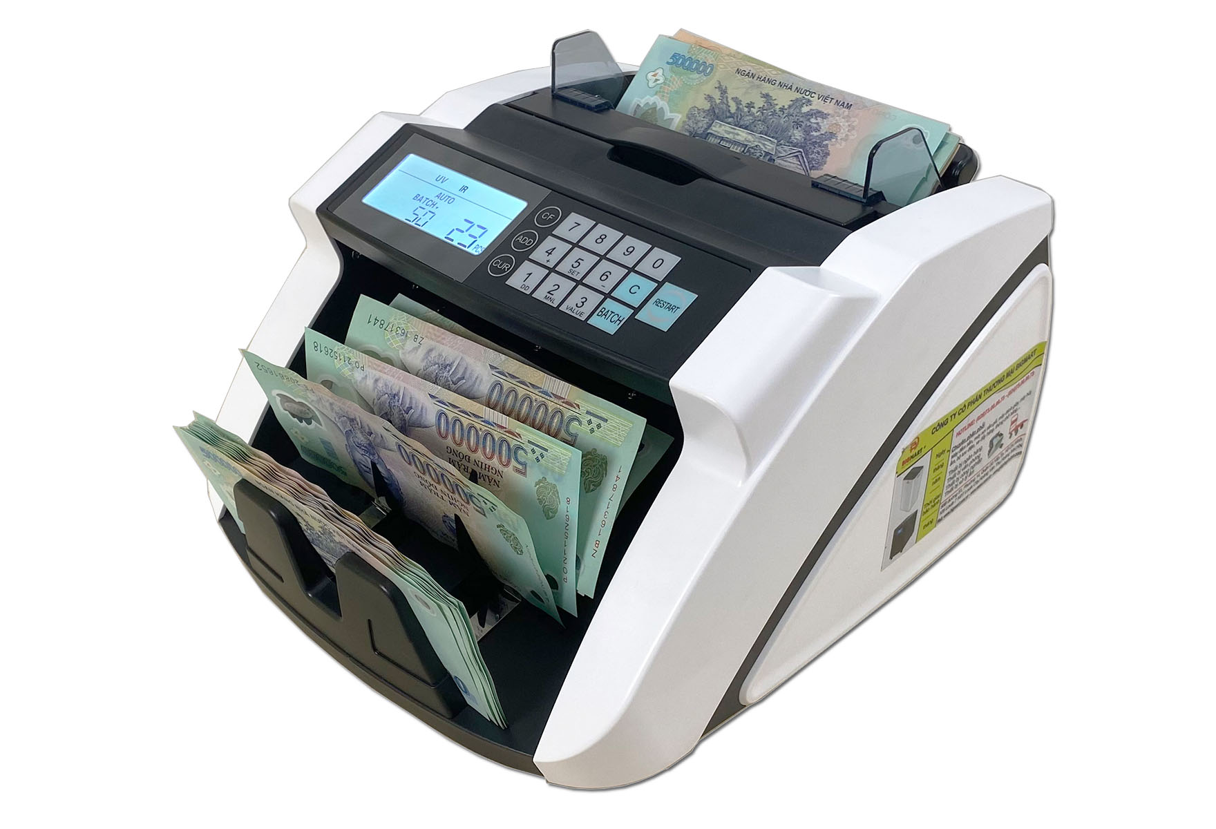 Chức năng chia mẻ (Batch): Có thể thiết lập số tờ tiền, vé số đếm theo lô (ví dụ 10, 20, 50, 100 tờ)